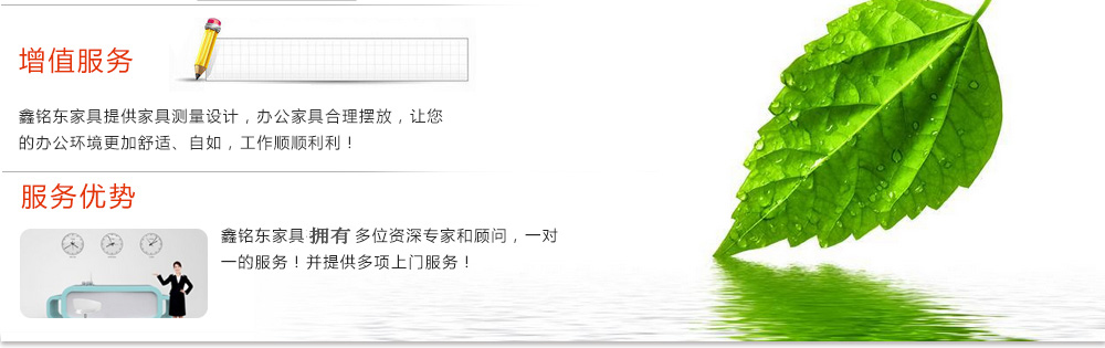 深圳市鑫銘東家具有限公司專業(yè)銷售各類辦公家具!產(chǎn)品涉及多種系列,如:班臺(tái)、班椅、屏風(fēng)、會(huì)議桌、會(huì)議椅、辦公沙發(fā)、茶幾、辦公桌、文件柜、電腦桌椅、各式餐臺(tái)、餐椅、書柜等辦公家具。 鑫銘東家具擁有一批優(yōu)秀的家具設(shè)計(jì)、生產(chǎn)及營銷的專業(yè)人士和高素質(zhì)的管理隊(duì)伍。銘東家具以"先難后易"之戰(zhàn)略,在產(chǎn)品結(jié)構(gòu)、產(chǎn)品質(zhì)量及服務(wù)水平方面,均推陳出新,力求完善,精益求精。使我們的產(chǎn)品質(zhì)量保持在國內(nèi)外家具潮流的先進(jìn)水平,力求滿足客戶的特殊需求。鑫銘東家具多年來致力于環(huán)保、實(shí)用家具的設(shè)計(jì)與開發(fā),集生產(chǎn)、銷售、服務(wù)于一體。本著"以人為本"的設(shè)計(jì)理念,大量開發(fā)符合人體工程學(xué)的各種產(chǎn)品,以"誠信為本"的質(zhì)量方針,真材實(shí)料,認(rèn)認(rèn)真真做產(chǎn)品,實(shí)實(shí)在在做人。鑫銘東家具更致力于創(chuàng)造"零維修率"的制造境界,實(shí)現(xiàn)"沒有維修的服務(wù)才是最好服務(wù)"的口號(hào)》了解更多